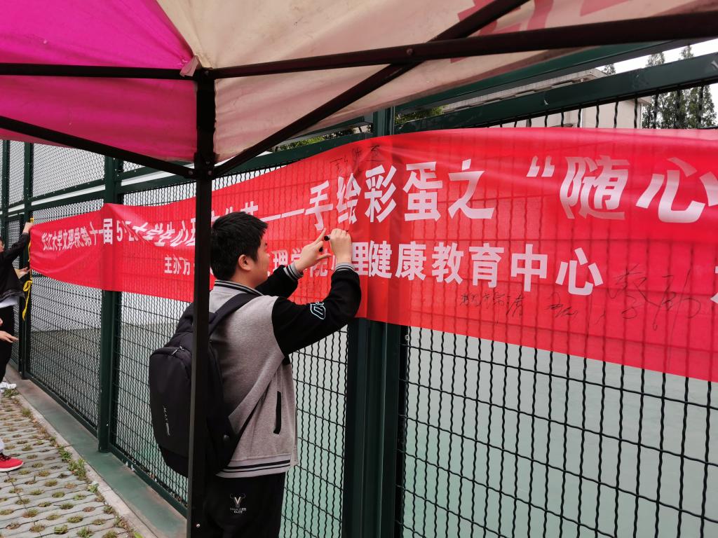 在“随心创意,show出精彩”活动中,同学们拿起画笔在鸡蛋上随心创作,用色彩传递心情,用图案表达内心,并将作品进行拍照展示。同学们相互帮助,相互交流,有效缓解了封校期间的压力,扫清了心灵上的阴霾。