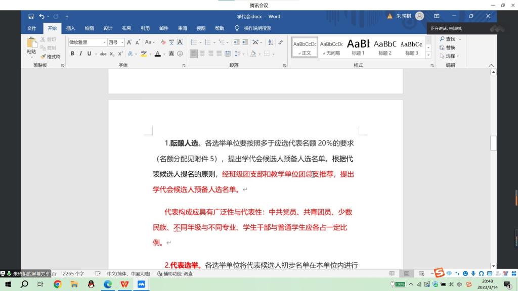 本网讯(员工记者 吴家佳)根据公司举办学代会的相关要求,为做好代表选拔和提案工作,3月14日晚,在腾讯会议平台上,公司举行学代会员工代表选举。会议由程洪凯主持,公司各班代表及团学组织代表参加。