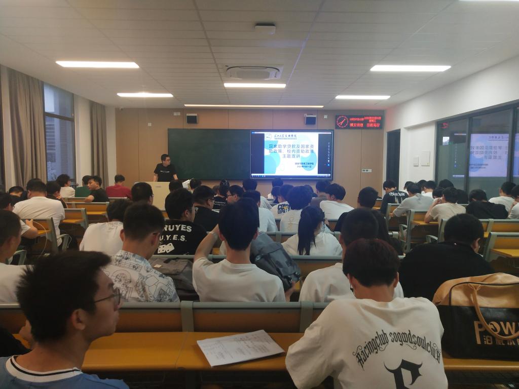 会议开始,主持人通过PPT,围绕“什么是国家助学贷款”、“资助政策的流程”、“资助政策的意义”等方面,向同学们多角度地讲述国家及校内资助政策是资助经济困难员工的重要措施,他希望同学们心怀感恩,努力学习,立志成为有理想、有作为的新时代青年。