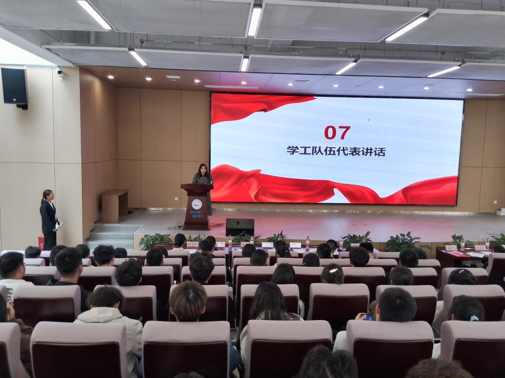 本网讯(员工记者 贺凡格 刘盼)10月13日,公司于学术报告厅开展第十九届团总支员工会及志愿者服务队换届大会暨第一次例会,会议由贺博主持,党总支副书记王大专和辅导员老师燕梦蝶、朱亦丹、陈晓倩、王妍柳、杨阳、韩雪莹参加活动,第十八届和第十九届团总支员工会及志愿者服务队全体人员参加会议。