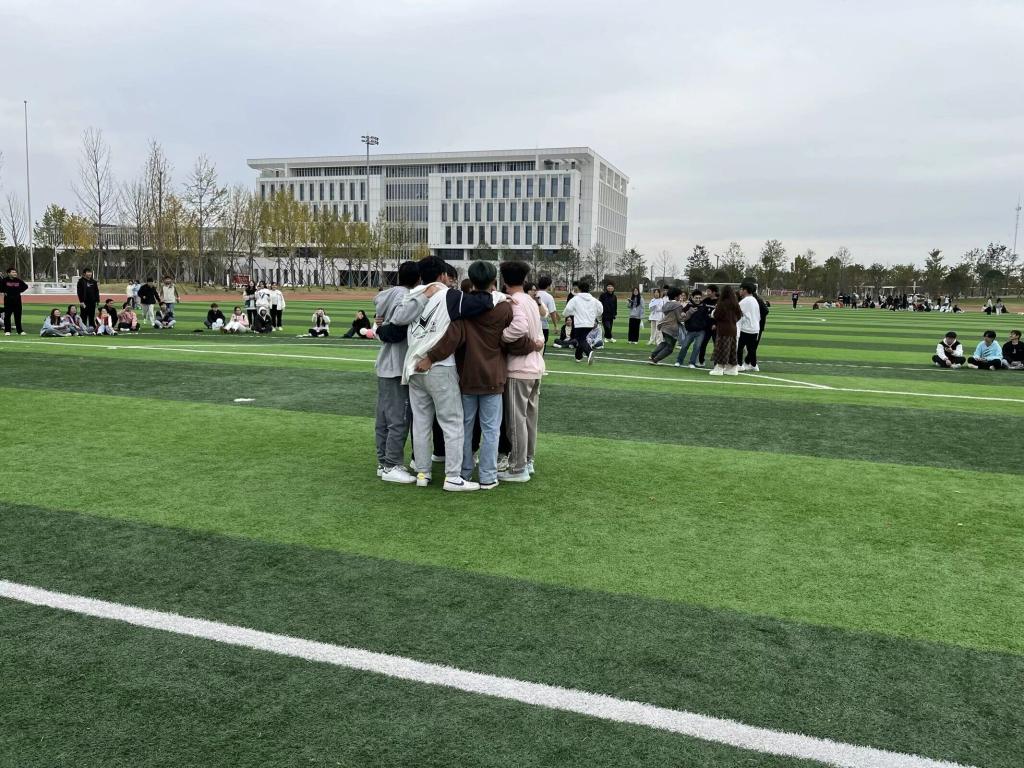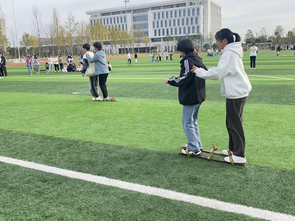 “悦动心灵”户外素质拓展活动中,“两人踏板”、“气球爆爆爆”、“接力赛”、“快乐抱抱抱”、“两人三足”、“气球接力”六项游戏充满趣味性,活动现场同学们全情投入,现场充满了欢乐与活力。