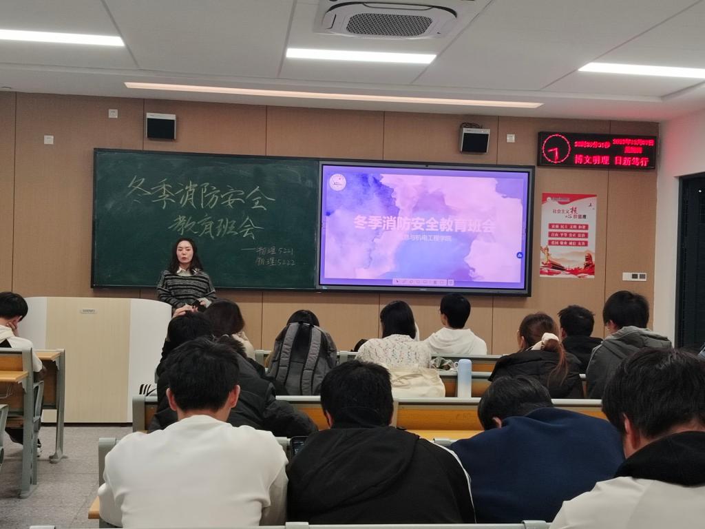 班会开始,辅导员为同学们播放消防安全警示宣传片,讲解了冬季火灾高发期以及引发火灾的常见原因,提醒全体同学在宿舍要高度重视冬季消防安全,严禁使用电热毯、小太阳等违规电器。随后,辅导员进一步向同学们阐述如何从源头预防火灾发生,以及如何加强应急能力。班会最后,同学们对冬季消防安全进行积极讨论,加深了对班会内容的进一步理解。