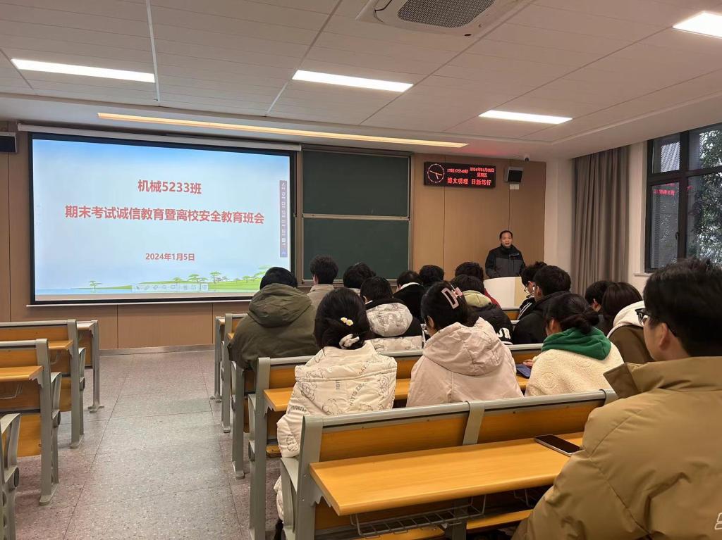 随后,班主任在会上结合PPT就假期离校请假手续、安全注意事项等问题进行了总体强调,叮嘱同学们在离校返家途中要保障好人身安全、交通安全、财产安全、消防安全、饮食安全,告诫同学们假期要提高防范意识,以防落入电信网络诈骗,确保自身寒假假期平安健康。