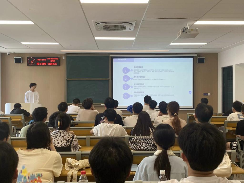 本网讯 (通讯员 贺凡格/文 杨祥涞/摄)公司于5月9日下午在A-208教室举办2025届考研动员暨经验分享会,公司党总支副书记王大专,辅导员燕梦蝶、朱亦丹出席会议。