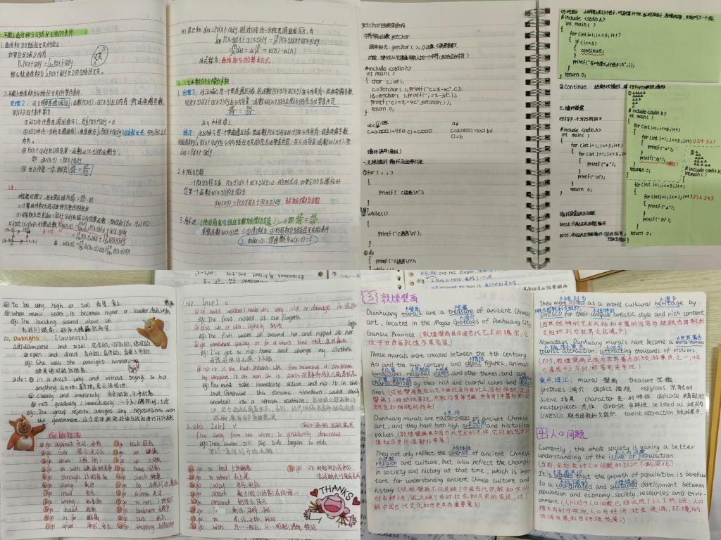 此次“笔下小课堂”活动,分为笔记分享、笔记评审、笔记展览三个环节。参赛笔记包含各课目的课堂笔记、网课学习笔记、四六级复习笔记等。评委根据笔记的字迹美观度、内容充实度和知识关联度等多方面进行评分。最后,物理5232鲁盼获一等奖;电信5242陈好、电信5232向庆红获二等奖;机械5243邓星雨、计算机5242周资含、电信5232柯珊、计算机5234边孙悦获三等奖;电信5231张娜、物理5231陈洒洒等同学获优秀奖。
