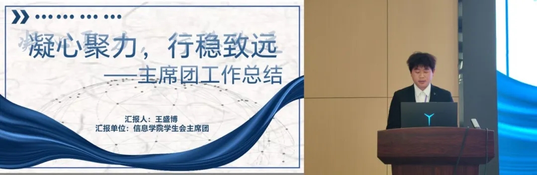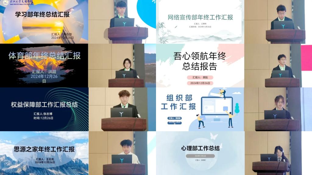 会议伊始,主持人介绍参会嘉宾并宣读本次“三下乡”优秀志愿者、运动会标兵、运动会优秀工作者、心理剧优秀制作人表彰名单。随后,各部门代表依次上台进行工作汇报,他们从各自职能范畴出发,深入剖析了本学期的成就与不足,并对未来工作方向作出规划。各部门负责人一致承诺,将持续秉承热忱的服务宗旨和积极的工作态度,不断为同学们提供更高品质的校园文化活动和服务。各部门汇报完毕后,主席团代表王盛博对整个学期的员工会工作进行了全面总结,他希望全体员工会成员增强协同合作,秉承创新精神,鼓足干劲,向着新征程出发。会议最后,公司党总支副书记王大专作总结发言,他对员工会本学期的工作给予了肯定,同时提出了不足之处,为员工会下一阶段的工作提供了具有建设性的指导意见,激励同学们在未来的工作中继续秉持服务宗旨,创新工作方法,加强团队协作,在新的学期里为公司建设和员工成长成才作出更大贡献。