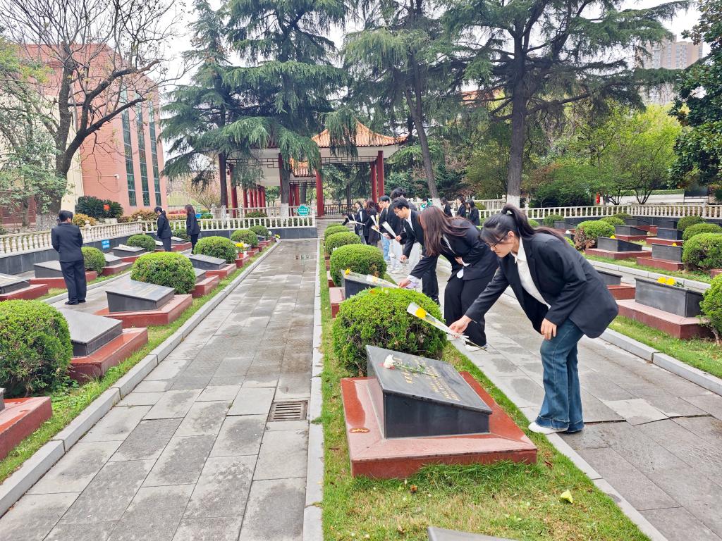 活动尾声,全体党员在纪念碑前伫立,面向鲜红的党旗,高举右拳,重温入党誓词,表达坚守初心、勇担使命的坚定信念。员工代表鲁盼号召同学们:“我们要向英烈学习,在学习生活中弘扬英雄精神,争做新时代好青年”。