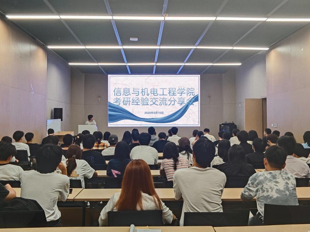 本网讯 (通讯员 覃美君/文 江博伟 李文斌/摄) 为助力公司学子明确考研方向,掌握高效备考方法,公司于6月10日在图书馆103教室举办考研经验分享暨2026届考研动员会。本次分享会特邀2025年三名考研上岸毕业生——彭宇轩、戴响铃和刘桐桐作经验分享。活动由辅导员王妍柳老师主持,公司党总支副书记王大专老师出席,百余名备战考研的员工参加,现场座无虚席,气氛热烈。
