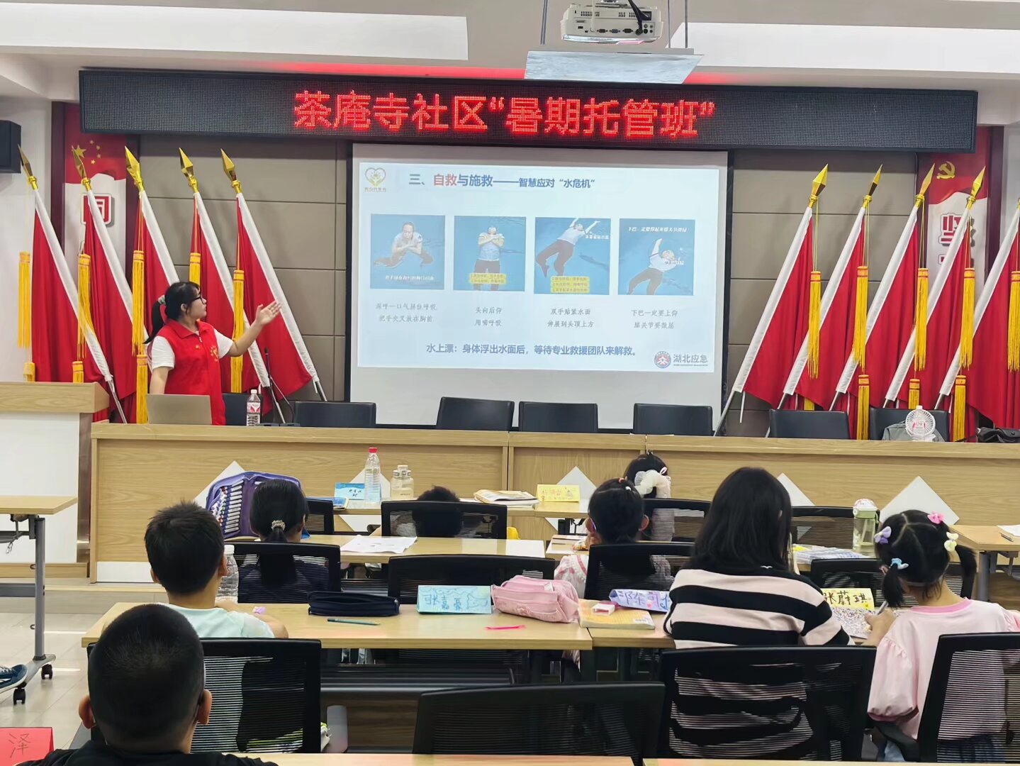 7月8日,思源之家服务队全体成员参加茶庵寺社区“暑期托管班”开班仪式,在场家长纷纷表示“托管班终于开班啦,还有老员工志愿者助阵,我们家的孩子又多了一个好去处”,开班结束后,志愿者鲁盼同学以“珍爱生命,严防溺水”为主题,为孩子们带来了生动实用的安全知识讲解。她结合夏季溺水事故高发的特点,用通俗易懂的语言讲解了易发生溺水的危险区域、溺水后的自救方法,以及发现他人溺水时的正确施救原则。
