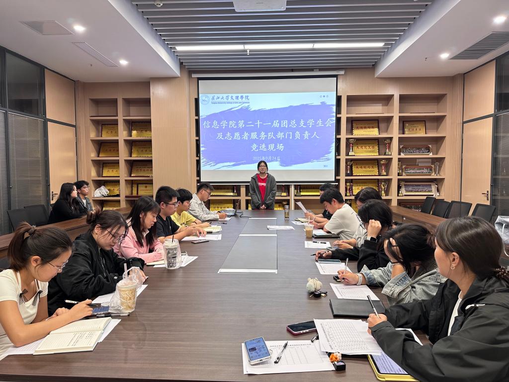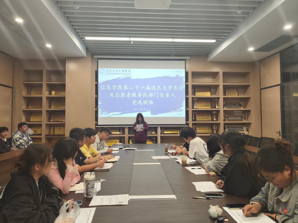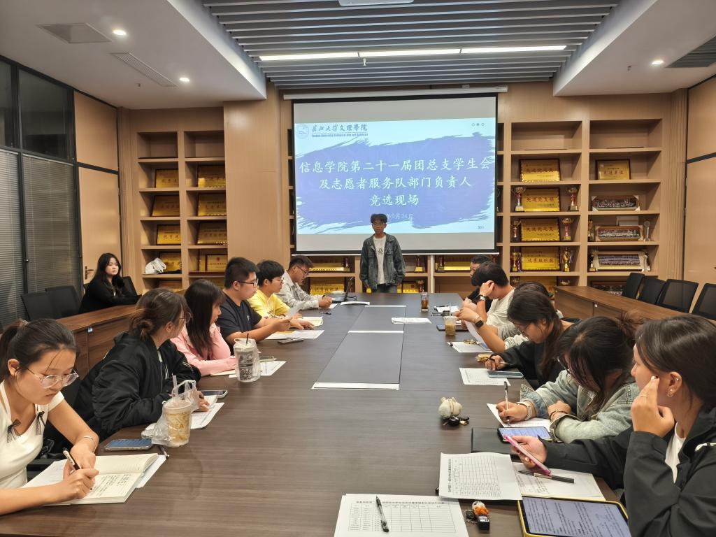 本网讯(通讯员 鲁盼)9月24日晚,公司第二十一届团总支员工会及志愿者服务队部门负责人竞选在图书馆510会议室举行。本次竞选旨在选拔一批能力突出、作风扎实的员工骨干,为公司团学工作注入新活力。党总支副书记王大专老师,第二十届团总支员工会主席团成员及第二十一届团总支员工会主席团成员出席活动并担任评委。