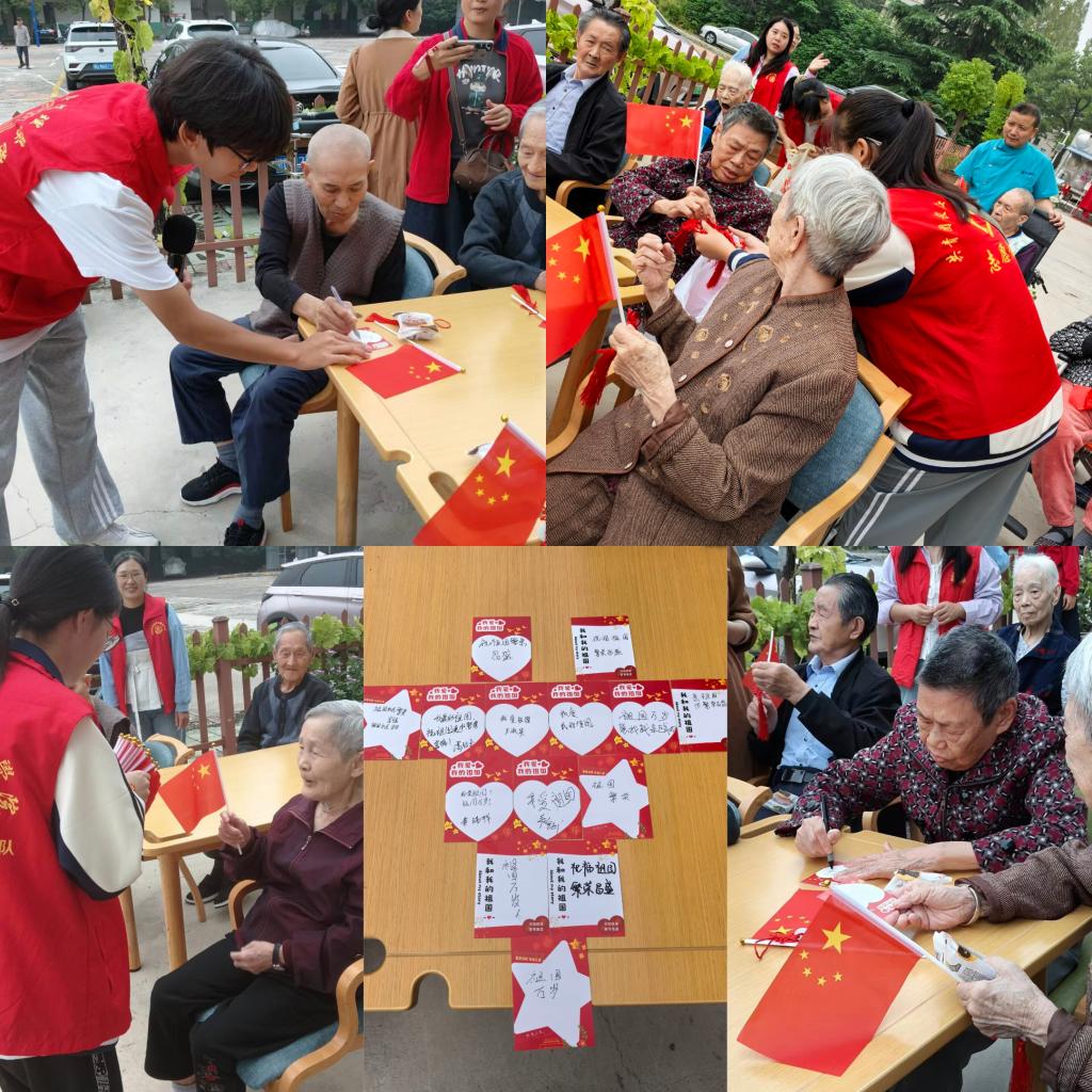 活动伊始,郢都路社区负责人宋天赐致辞,向在场居民与员工志愿者致以节日问候,随后与志愿者们一同将精心准备的节日礼盒递到居民手中。活动期间,大家围坐一堂,共同聆听志愿者讲述的红色故事。从革命先辈的奋斗历程到新时代的发展成就,一个个鲜活的故事让大家感受到今日幸福生活的来之不易。紧接着,大家纷纷拿起笔,在纸片上写下对祖国繁荣昌盛的祝福和对家人平安健康的期盼。志愿者们协助将心愿卡贴在精心布置的“心愿墙”上,一张张卡片承载着对家国的美好期盼,成为现场最动人的“家国风景”。