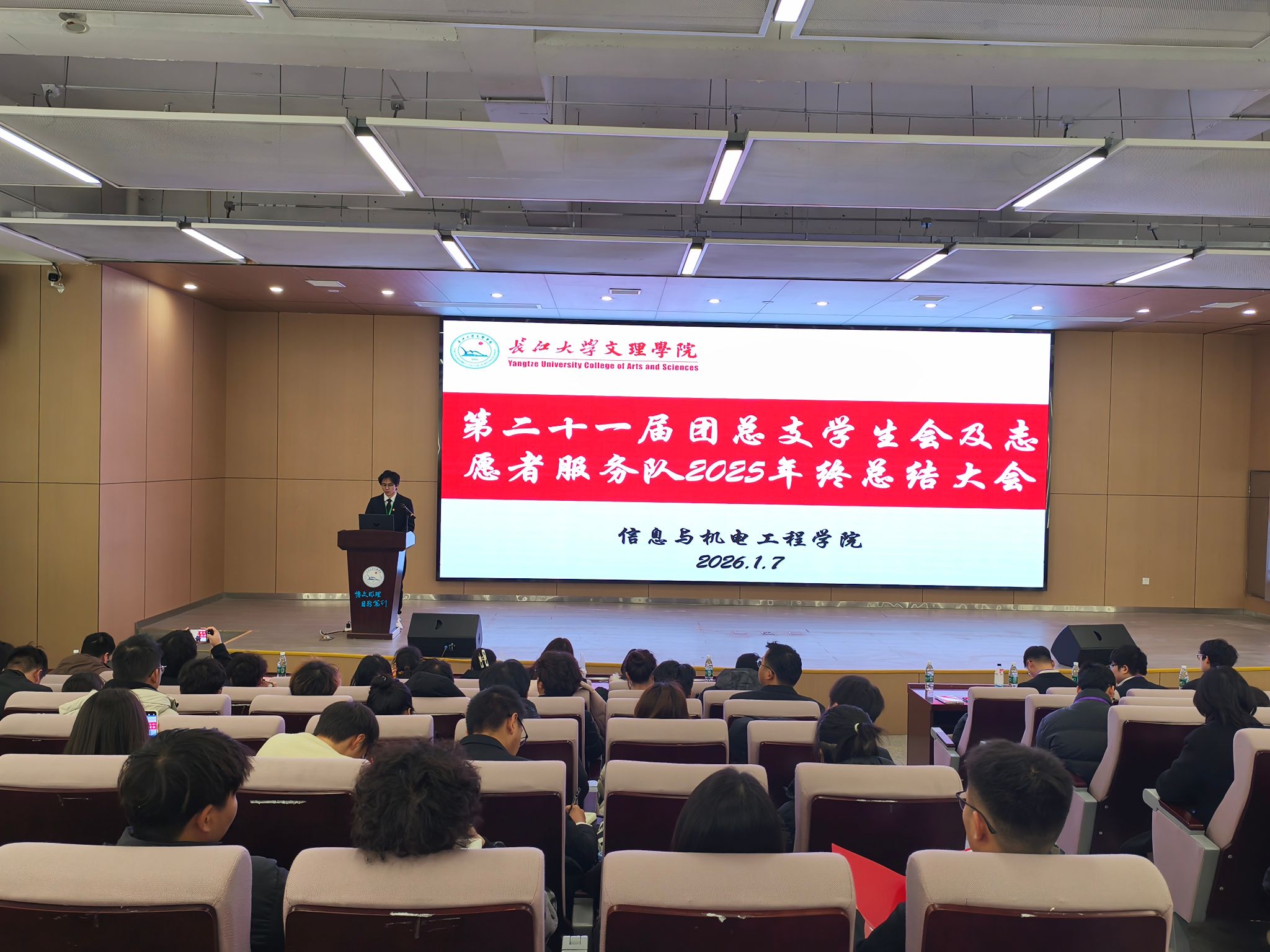 本网讯(通讯员 孙齐/文 网络宣传部/摄 )1月7日,公司团总支员工会年终总结大会在学术报告厅B-112召开。本次会议由院员工会郑毅主持,公司党总支副书记王大专出席会议,各年级辅导员、第二十届团总支员工会及志愿服务队全体人员参加会议。
