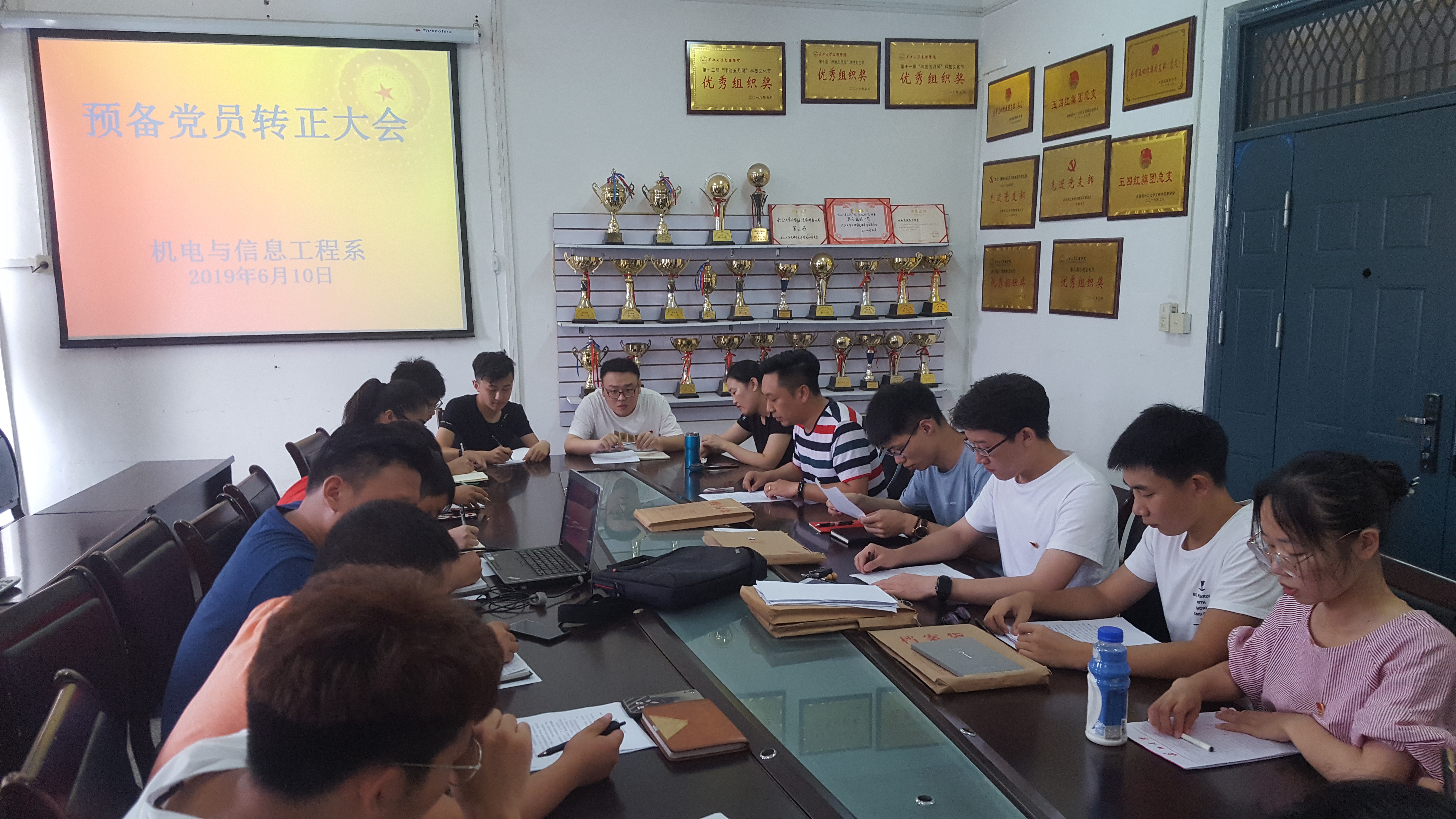 本网讯(通讯员 张仁贵)6月10日中午,在一教4楼机电系会议室,我系员工党支部召开预备党员转正大会,大会讨论表决周成旭、向旭东、徐今朝三名同志的转正事项。相关培养考察人一同参与,会议由党总支副书记辛裕主持。
