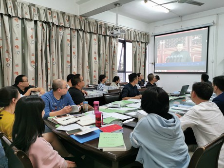 首先,全体教职工在朱锐的带领下,集体学习了习近平新时代中国特色社会主义思想,具体内容包括习近平主席在庆祝中华人民共和国成立 70 周年大会上的讲话精神;让爱国主义旗帜永远高扬——礼赞 70 年新中国;习近平在国家勋章和国家荣誉称号颁授仪式上的讲话精神;中共教育部党组关于学习贯彻习近平总书记等中央领导同志教师节重要讲话精神的通知精神;庆华诞——新中国史图文学习资料学习等内容。