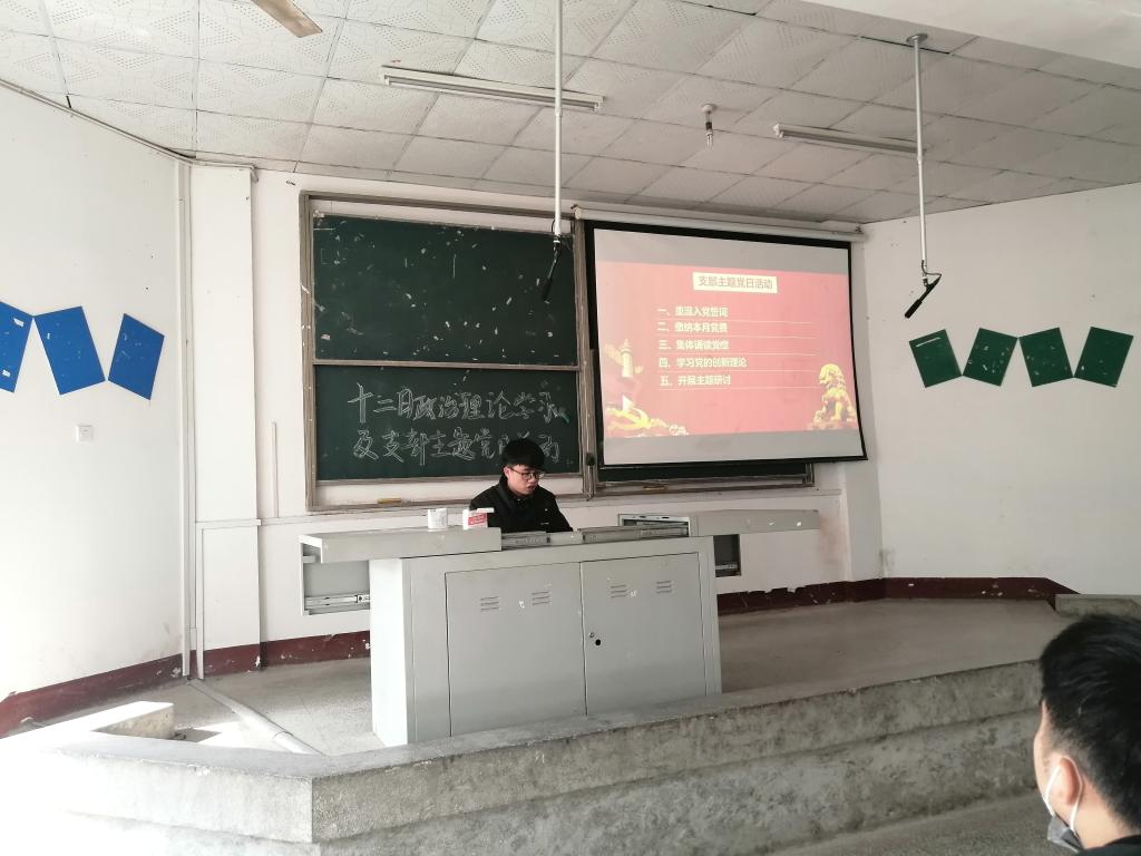 本网讯(员工记者 谢丽娇)12月21日中午,在D4-200阶梯教室,我系员工党支部开展12月份政治学习和“支部主题党日”活动。会议由易新宇同志主持,员工党支部副书记成观雄出席,支部全体党员参加。