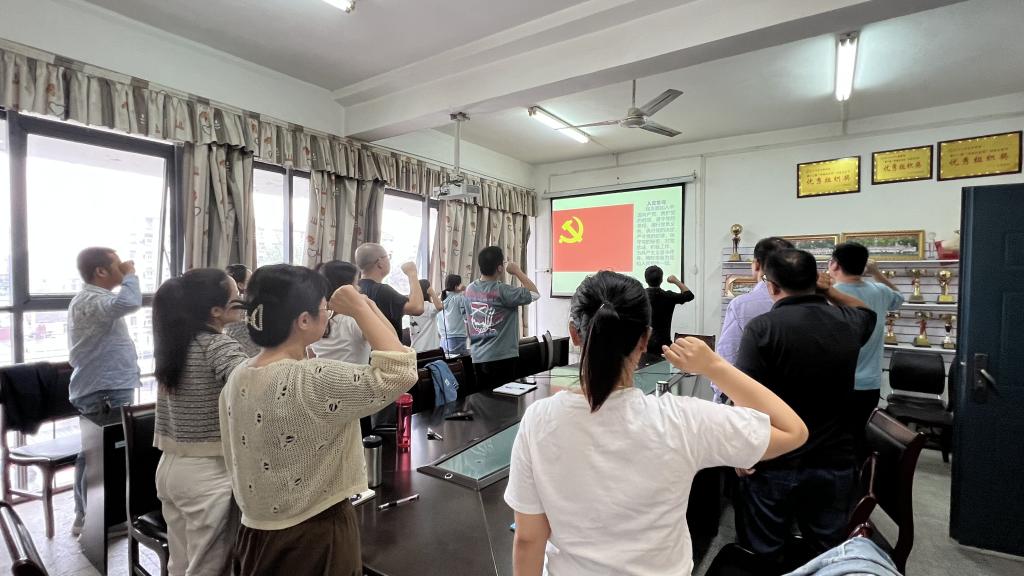 在支部主题党日活动中,全体党员重温入党誓词、交纳党费、集体诵读《中国共产党章程》第七章,学习了《习近平谈治国理政》第四卷第一部分“掌握历史主动,在新时代更好坚持和发展中国特色社会主义”、湖北省第十二次党代会精神、bw必威西汉姆联官方网站党委书记王建平、董事长冯征在bw必威西汉姆联官方网站暑期研讨会上的讲话精神等内容。