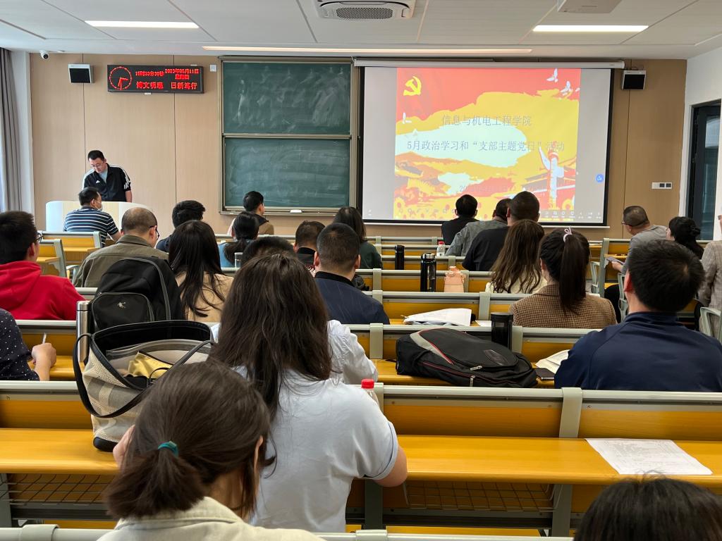 在支部主题党日活动中,全体党员重温入党誓词、交纳党费、集体诵读《中国共产党章程》;学习《中国共产党章程》第五章;党的二十大精神:如何理解教育、科技、人才是全面建设社会主义现代化国家的基础性、战略性支撑;如何理解培养什么人、怎样培养人、为谁培养人是教育的根本问题;《论党的自我革命》、《习近平新时代中国特色社会主义思想的世界观和方法论专题摘编》、《习近平关于调查研究论述摘编》等内容。