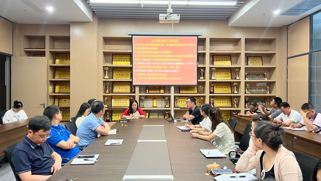 本网讯(通讯员 燕梦蝶)6月24日中午,公司教工党支部在会议室开展6月份政治学习和“支部主题党日”活动。会议由教工党支部书记呙明辉主持,支部全体教职工参加。