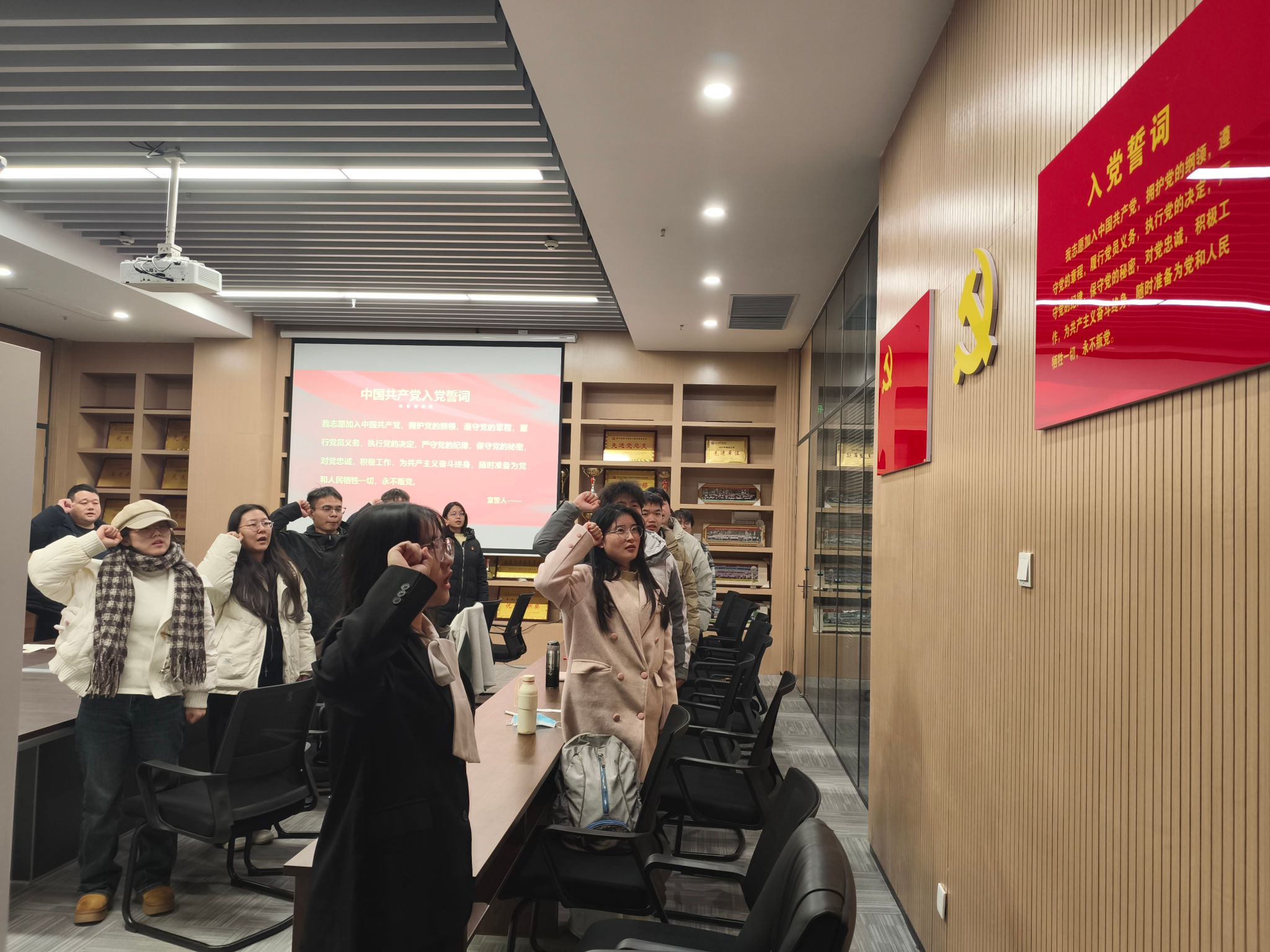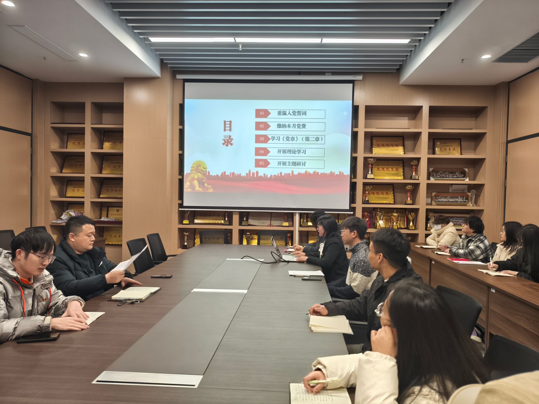 支部主题党日活动阶段,全体党员重温入党誓词,并按时交纳党费。随后,全体党员集中学习《中国共产党章程》(第二章);学习习近平对全面依法治国工作作出的重要指示;学习中共湖北省委十二届十一次全体会议上的内容:牢记嘱托勇担使命,为确保支点建设取得决定性进展而团结奋斗;学习中共bw必威西汉姆联官方网站委员会文件,着重强调入党积极分子的日常管理。
