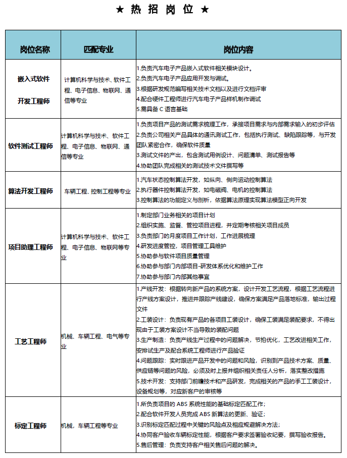 北京英创汇智科技有限公司简称英创汇智,中国汽车智能线控技术的领航者,已研发出具有国际先进水平的ESC/EPBi、TBS、ADAS、T-RES、T-EPB.T-IBC等线控底盘关键产品,并具备涵盖产品研发、测试、制造、标定匹配的全链条产品开发和生产体系。公司成立于2016年,是国家高新技术企业、国家级专精特新小巨人企业,核心团队来自清华大学,在线控底盘领域拥有20多年的技术积累,并拥有完整的自主知识产权。英创汇智以北京亦庄研发中心、天津生产制造基地、湖北英山制造中心及实车测试场为三大战略支点,建成年产300万套的全自动化生产装配车间,与奇瑞汽车、上汽通用五菱、江淮汽车、东风汽车、北汽集团、一汽集团、长安汽车、长城汽车、吉利汽车等众多汽车企业开展了规模化配套。英创汇智坚持自主创新、开放交流,立志通过一流的产品和技术服务我国汽车工业自主可控战略目标,为民族汽车工业做大做强贡献力量!