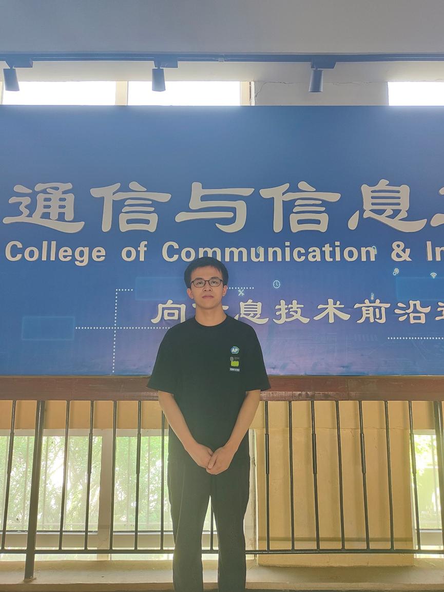 潘子豪,湖北汉川人,共青团员,18级电子信息工程专业毕业生,于2022年考上西安科技大学硕士研究生。2023年4月,在通信技能大赛中荣获三等奖;为了丰富自身的社会经验,在2023年暑假期间参加了“三下乡”社会实践活动,深入基层,服务社区,提升了社会责任感和实践能力;在2023年9月的数学建模比赛中荣获校级三等奖。在此向母校致以最诚挚的谢意,感谢母校提供了广阔的学习天地和丰富的成长平台,感谢您给予的一切教育和关怀!正是您的培养和支持,使我开启了员工生涯的新篇章。最后,祝愿母校蓬勃发展,越来越好!