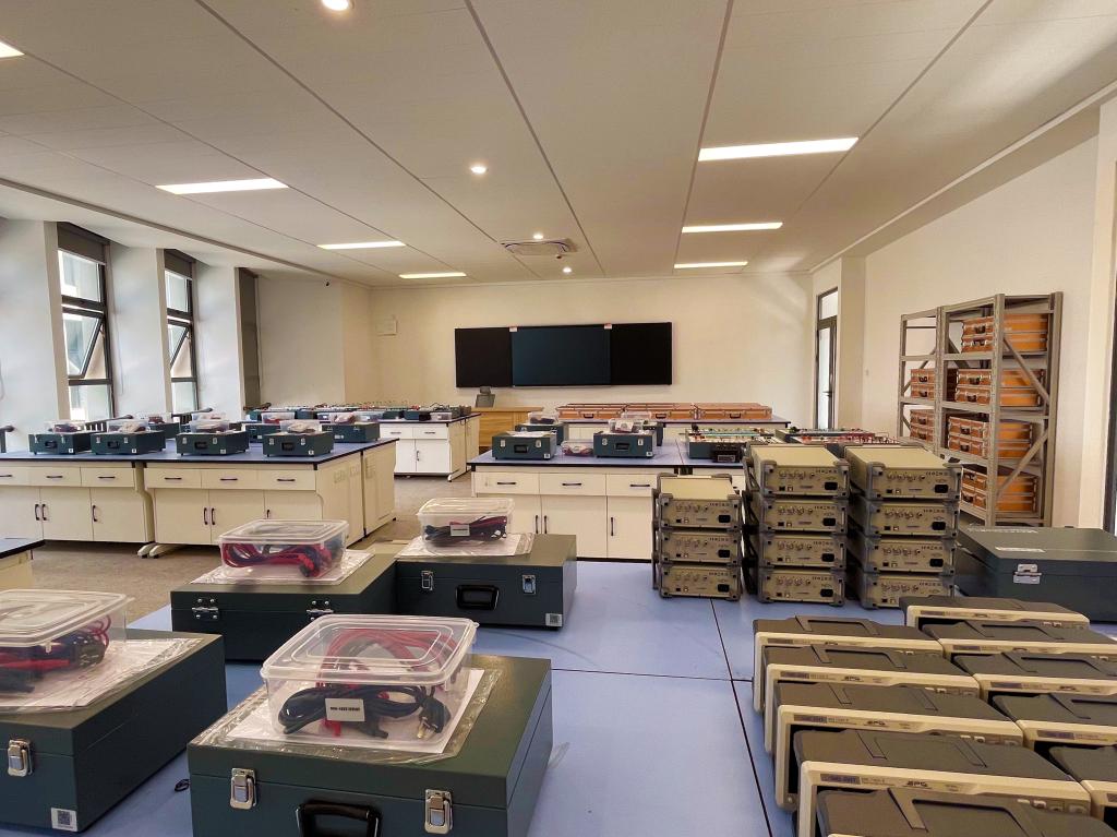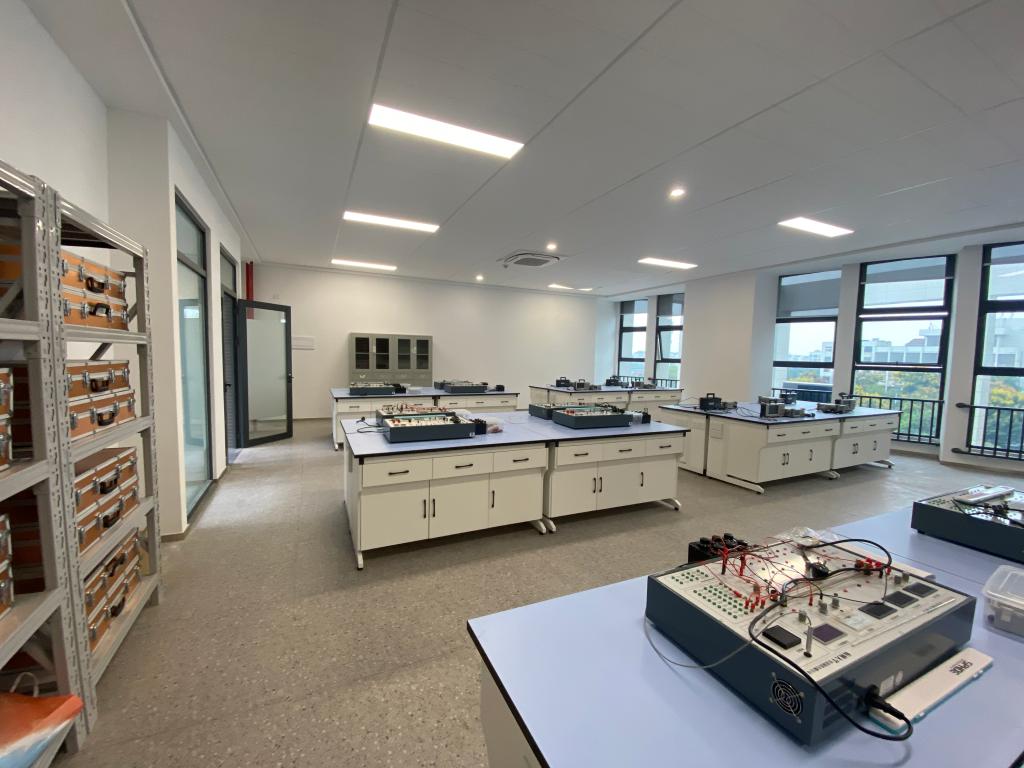 物理电学实验室新建于2022年,现有教学面积120平米,拥有各类先进仪器设备总价值约44万余元,各类电学仪器台套数90台。每学年承担全院理工科员工近500人物理电学实验教学任务。