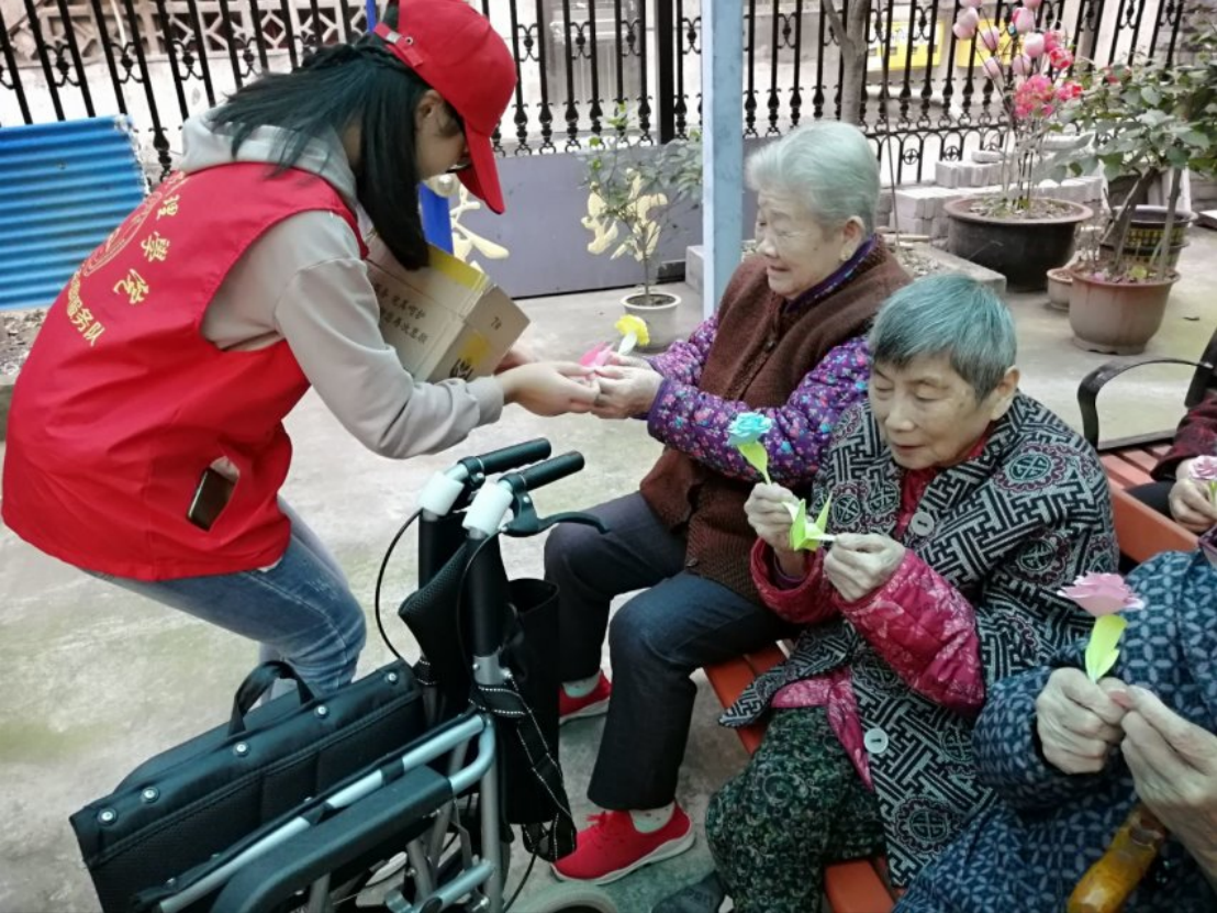 表演结束后,同学们将手工折花、千纸鹤作为礼物送给每一位老人,并表达自己的祝福。最后,赵学峰对大家表示赞扬与感谢。