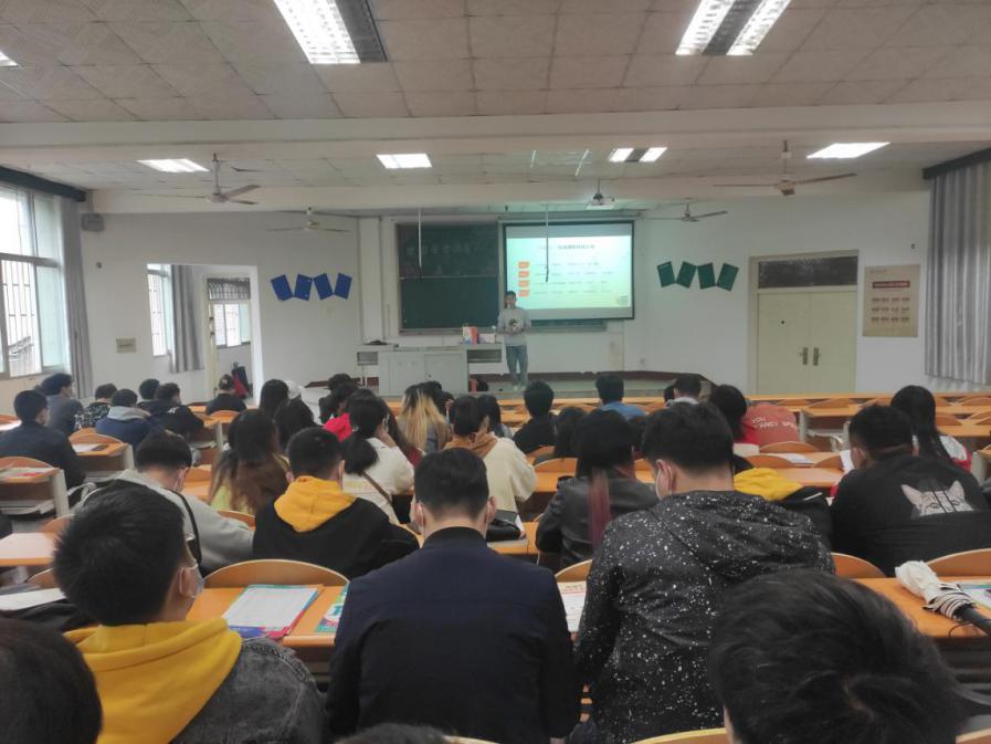 该公司校招主管结合PPT作详细介绍,对公司发展、招聘岗位、工作职责和福利待遇等方面做详细介绍。他通过面对面交流,互动互答的方式,全面讲解了该公司的招聘岗位职责和网上报名、投报简历的流程,并对同学们提出的问题进行解答,随后有意向的同学通过二维码进行网上投报简历。