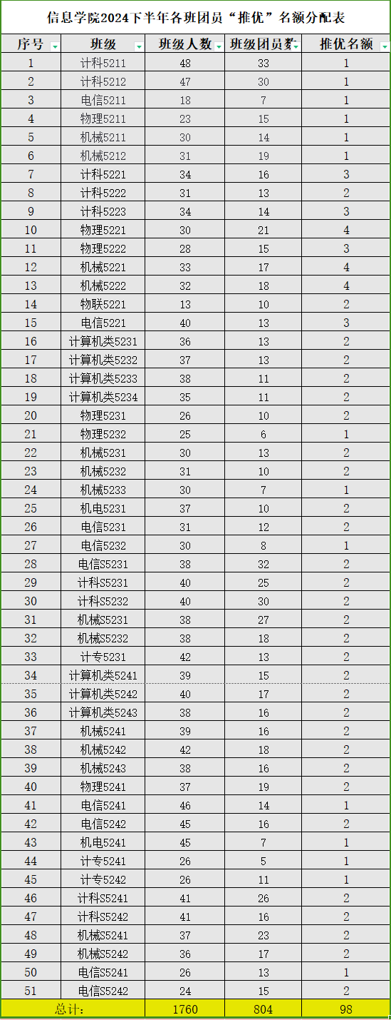 根据bw必威西汉姆联官方网站团委《关于做好2024年下半年团员“推优”工作的通知》要求,现将信息公司各团支部团员“推优”名额分配公示如下: