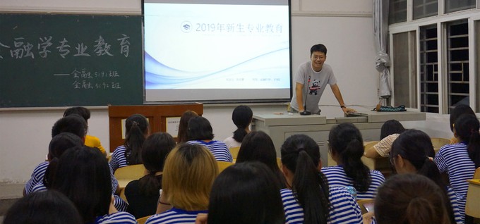 三位专任教师紧靠专业知识,从专业概况、培养目标、就业方向、及办学特色等方面,对专业的介绍娓娓道来。老师们绘声绘色的讲解,调动起了现场的气氛,同学们认真听讲、积极提问,老师们耐心讲解,严谨作答。欢声笑语,其乐融融。其中,金融学专业陈世豪老师谈到自己是因为《货币战争》这本书激起了对于金融学专业的兴趣,他推荐给同学们看,同时对同学们提出了要求,希望大一新生尽早明确学习目标,学好专业知识。国贸专业孙颖老师重点谈到英语对国际经济与贸易专业的重要性,她鼓励同学们努力学好英语,为专业课学习打下坚实的基础。法学专业陈娟老师通过播放《今日说法》节目,用真实案例引导新生思考什么是法学及如何开展法学专业学习。
