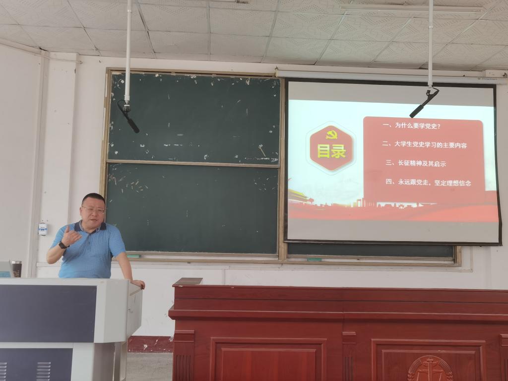 本网讯(通讯员 周星天)为贯彻习近平总书记在党史学习教育动员大会上的重要讲话精神,6月3日下午经法系在四教300组织召开了“学党史牢记长征精神;感党恩坚定理想信念”的专题讲座。本次讲座特邀经法系党总支部书记李成军老师主讲,全体员工党员、入党积极分子、大一全体员工参加。