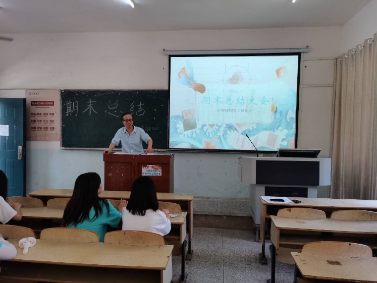 本网讯(员工记者 郁鑫)6月24日,在2教105教室,金融5202班召开期末总结班会,系主任兼金融5202班班主任万楚军老师、辅导员滕宋云老师出席班会。
