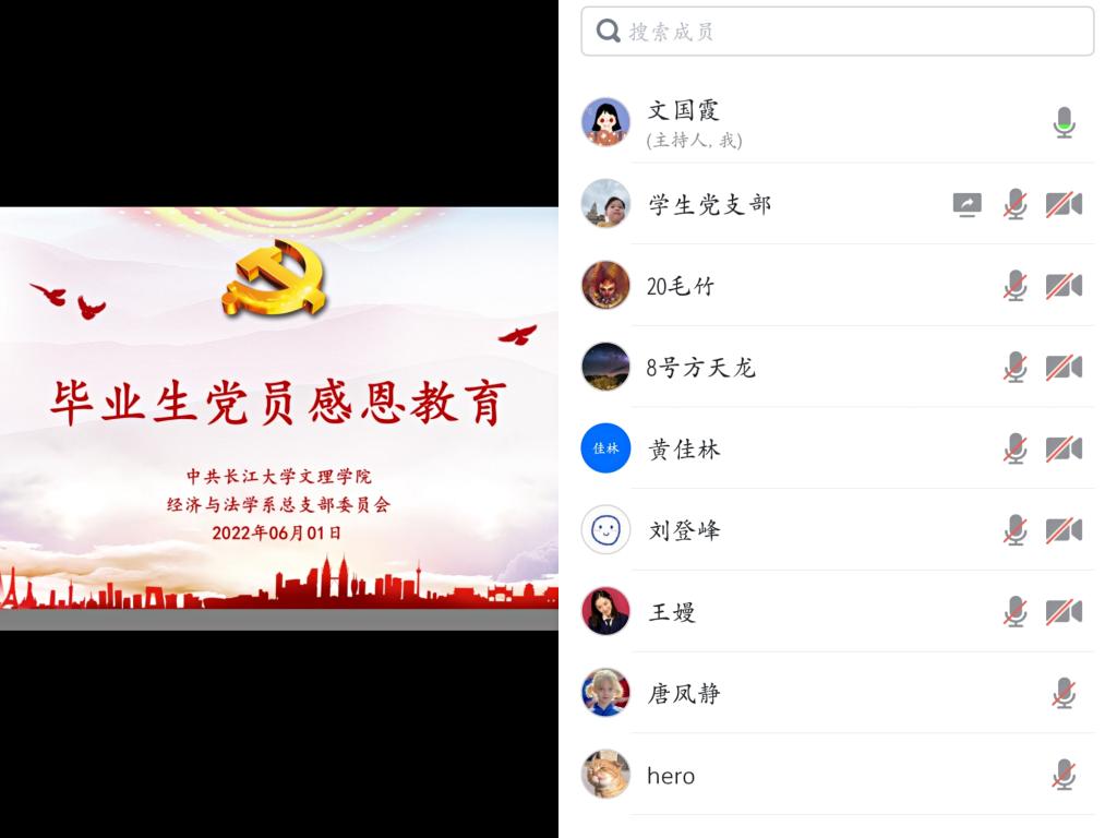 本网讯(通讯员 江晟瑀)6月1日中午,经法系组织开展毕业生党员离校教育报告会,系党总支书记李成军以“青年党员要成为优秀骨干力量”为题作专题报告。员工党支部毕业生党员13人参加,报告会以线上线下方式同步进行。