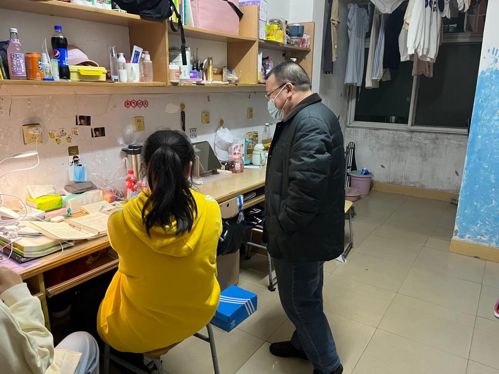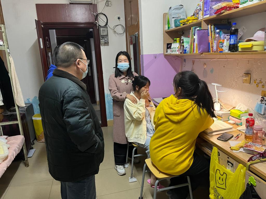 本网讯(见习记者 李欣怡 田琼钕 夏雪飞)为进一步做好疫情防控期间的教育安抚工作,落实各项工作管理措施,2022年10月9日晚经法系党总支书记李成军和辅导员文国霞、卢佳智老师前往员工宿舍看望慰问员工,切实关心系部重点关注员工。