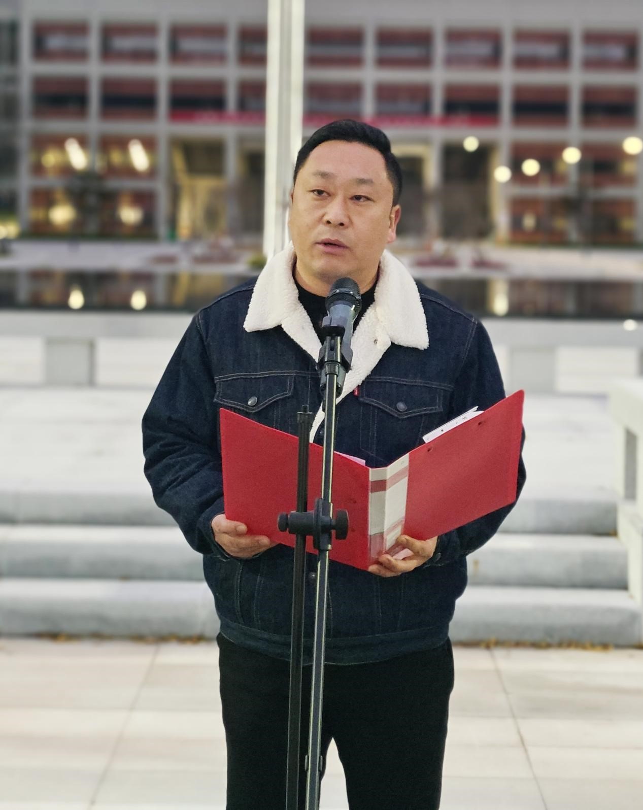 仪式第二项,由员工代表万佳鹏同学进行国旗下讲话,万佳鹏同学在讲话中提到,作为新时代青年的我们,要主动作为、勇于担当,积极投身优秀传统文化传承发展的社会实践活动中,争做时代先锋,谱写时代华章,为中华民族伟大复兴贡献青春力量。要坚定文化自信,秉持开放包容,坚持守正创新,担当使命、奋发有为,做中华优秀传统文化的传播者、践行者、传承者,为实现中华民族伟大复兴而不懈奋斗。