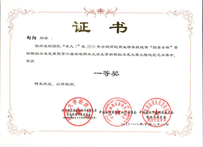 全国高校商业精英挑战赛“国泰安杯”营销模拟决策竞赛暨第六届海峡两岸老员工营销模拟决策大赛大陆地区总决赛 一等奖