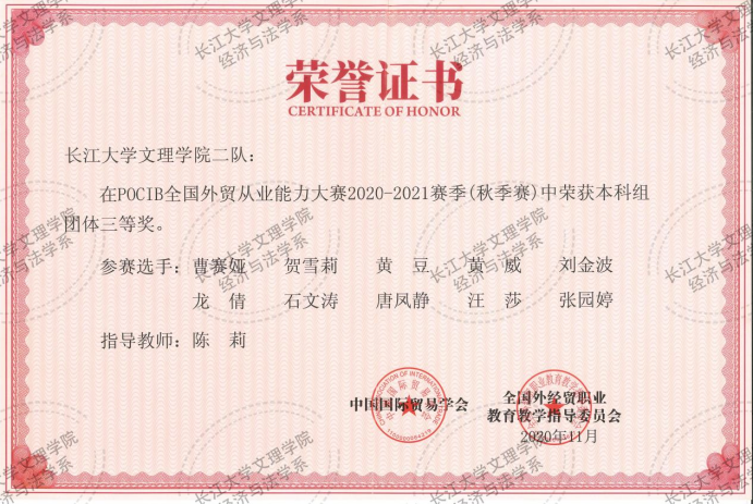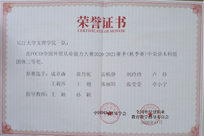POCIB全国外贸从业能力大赛2020-2021赛季(秋季赛) 团体三等奖