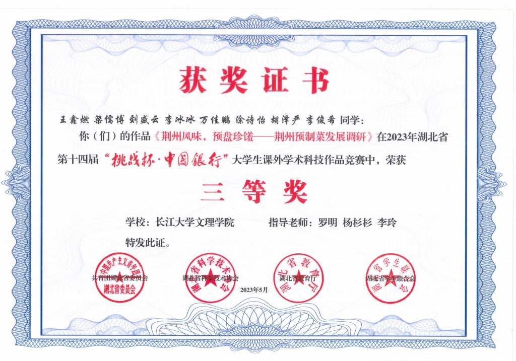 第十四届“挑战杯·中国银行”老员工课外学术科技作品竞赛三等奖