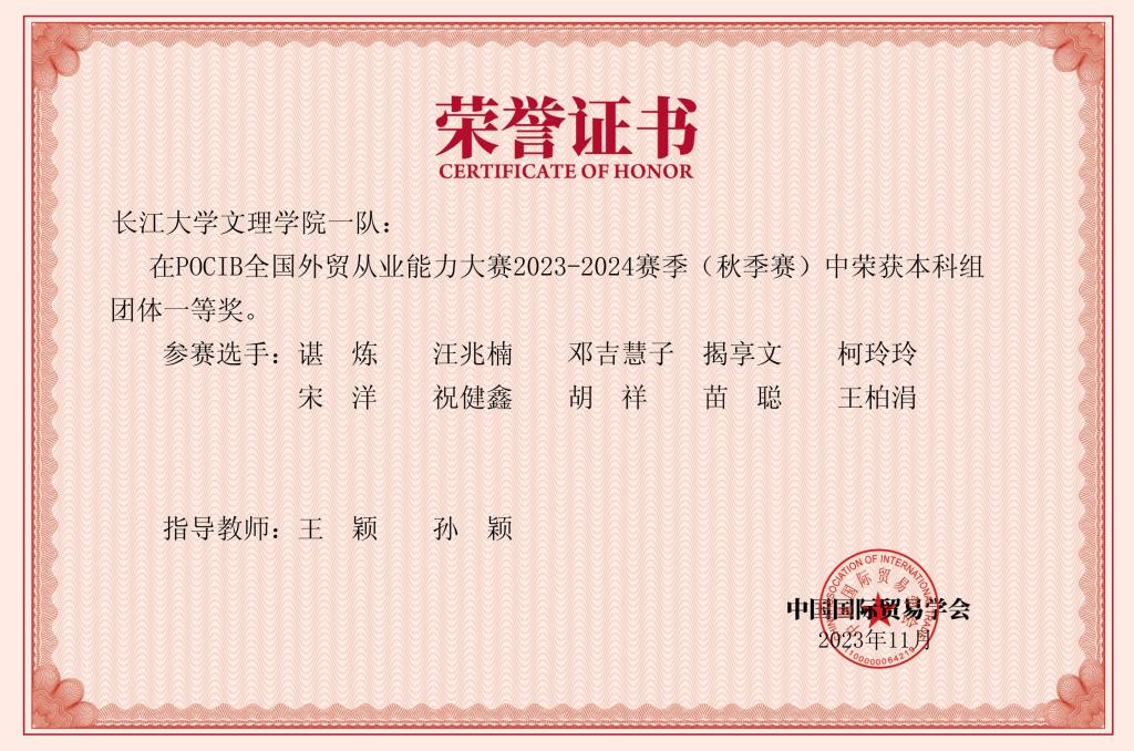 POCIB全国外贸从业能力大赛2023-2024秋季赛团体三等奖