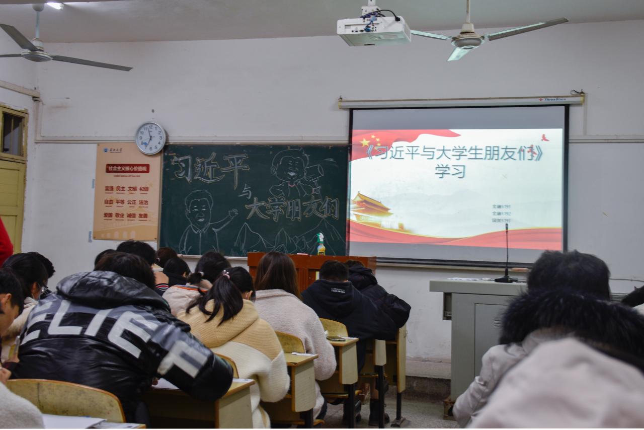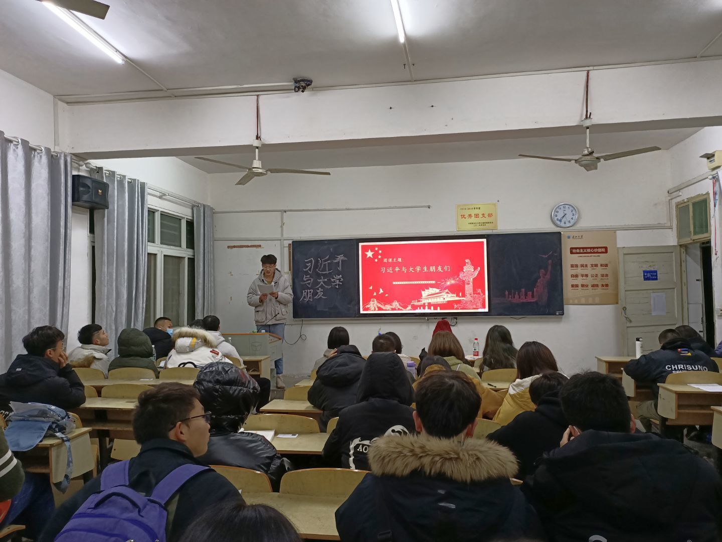 《习近平与老员工朋友们》是习近平总书记对老员工的深深嘱托,也是总书记对老员工的殷切希望。在此次主题团日活动中,各班根据实际情况,各自按不同形式组织了本次团日活动。大一年级刚升入大学,积极好动,在室外开展了主题团日活动。各班利用有趣的运动来活跃气氛;大二主要利用团课方式深入讲解习近平总书记对青年成长的殷殷期望和青年对自身发展的高标准、严要求;大三、大四各班则利用线上课堂的方式,带领大家树立起更加完美的价值观,其中金融5182班主持人在团日活动中与同学们分享了习近平与老员工的访谈实录,他们用最真实的例子拉近了习近平总书记与老员工们的距离。