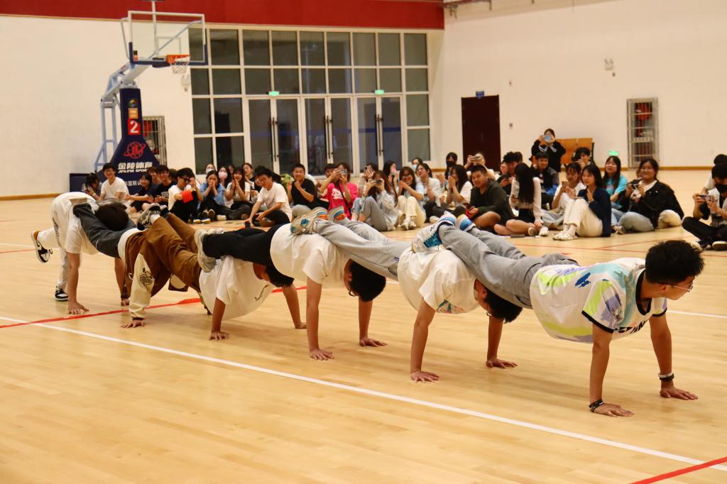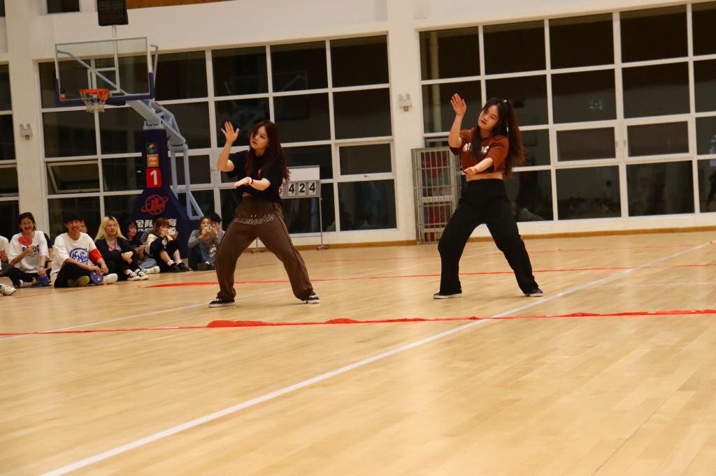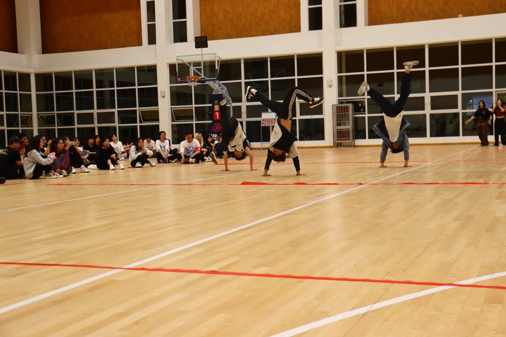开场的热舞激起了同学们对游戏的热情,洋溢着青春气息的“女团”舞蹈为同学们放松身心,《樱桃小丸子》和《恋爱循环》舞蹈随即而上。随后即是“男团”,五名同学为大家展示一段《BUTTERFLY》街舞表演,最后是金融5211班李秉昱和金融5192班冯文轩两位同学的独唱表演。