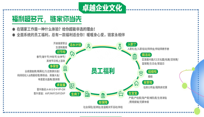 3.住宿福利:提供住宿解决方案,应届生选择链家租房,可享受佣金减免和折扣;