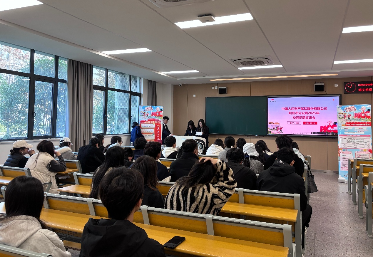 本网讯(见习记者:谭钱鑫)为贯彻落实稳就业、保民生工作要求,搭建高质量校企对接平台,助力2026届毕业生精准把握就业机遇,11月14日,经法系特邀中国人民保险集团开展专场宣讲会。经法系2026届毕业生满怀热忱参与活动,近距离感受央企品牌魅力,明晰行业发展趋势,解锁职业成长新路径。