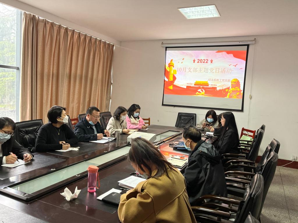1027日下午14:30,经法系全体教职工在系会议室开展10月政治学习和支部主题党日活动。会议由党总支书记李成军主持。