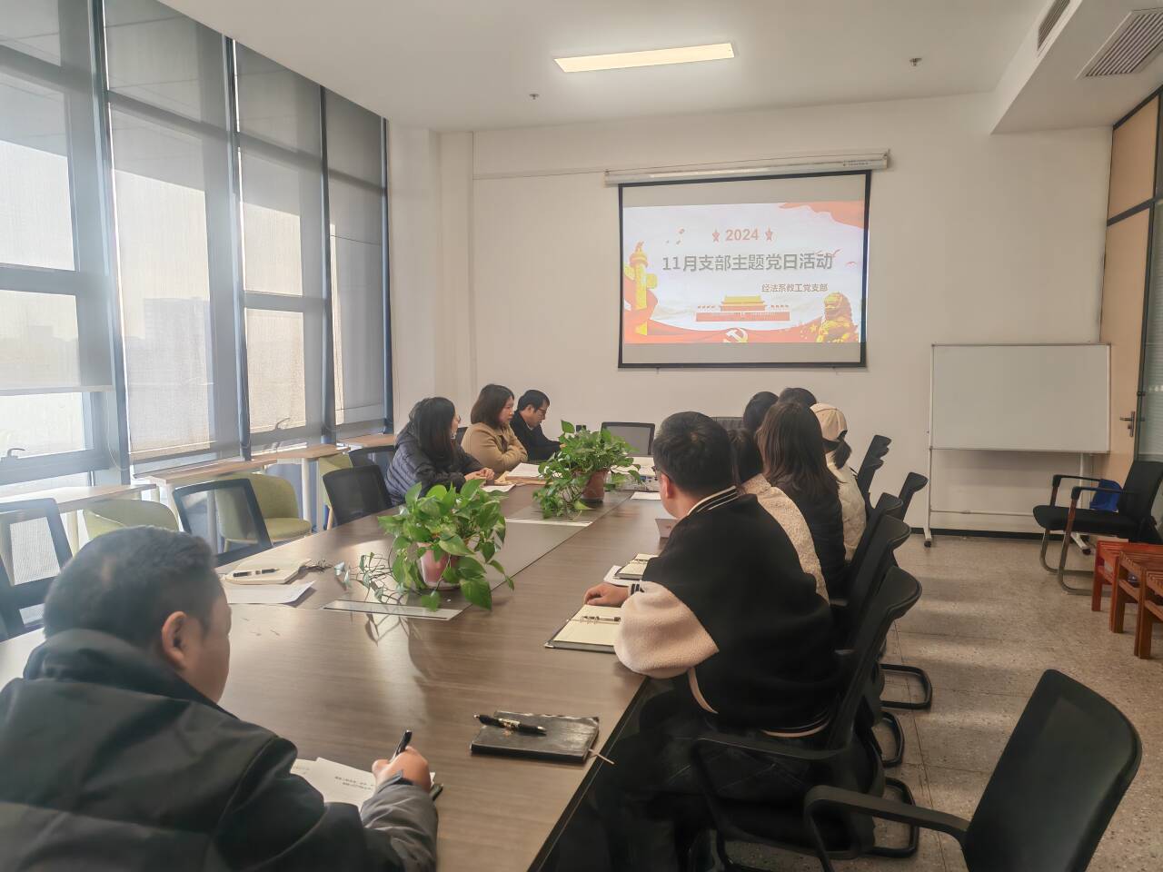 11月28日下午16:00,经法系教工支部在系会议室开展11月政治学习和支部主题党日活动。会议由教工党支部书记陈莉主持。