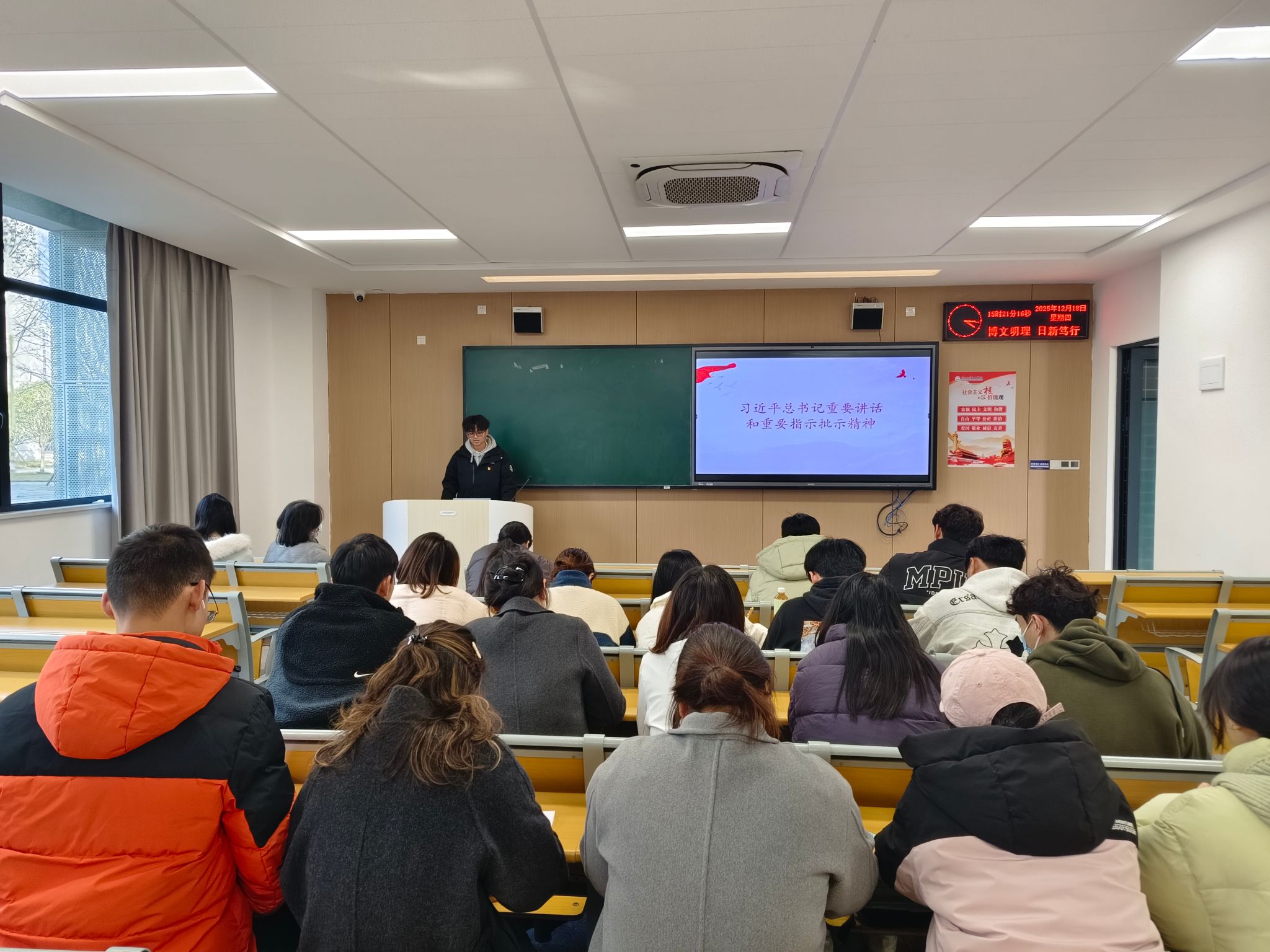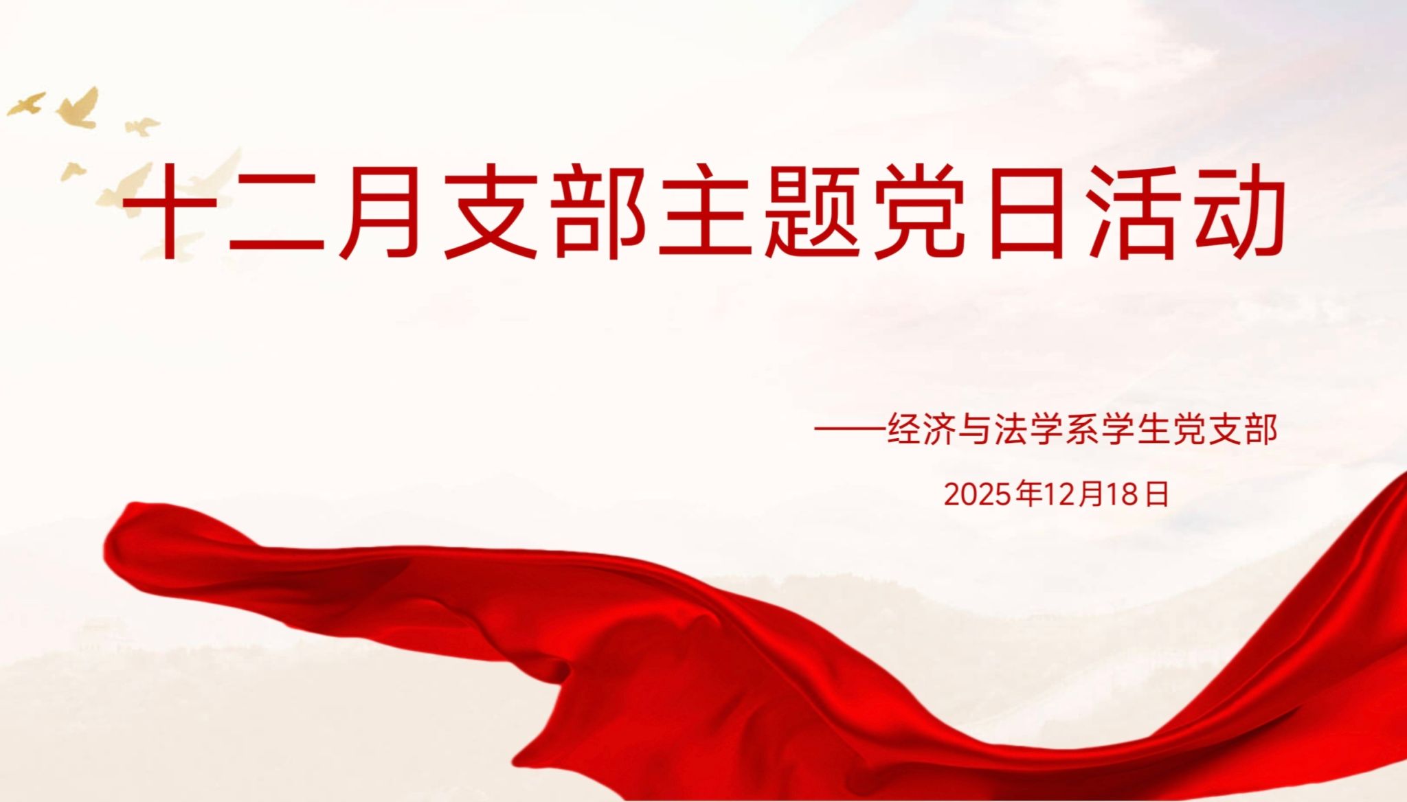 2025年12月18日15:00,经法系员工党支部在教学楼A-106S开展12月政治学习和支部主题党日活动。