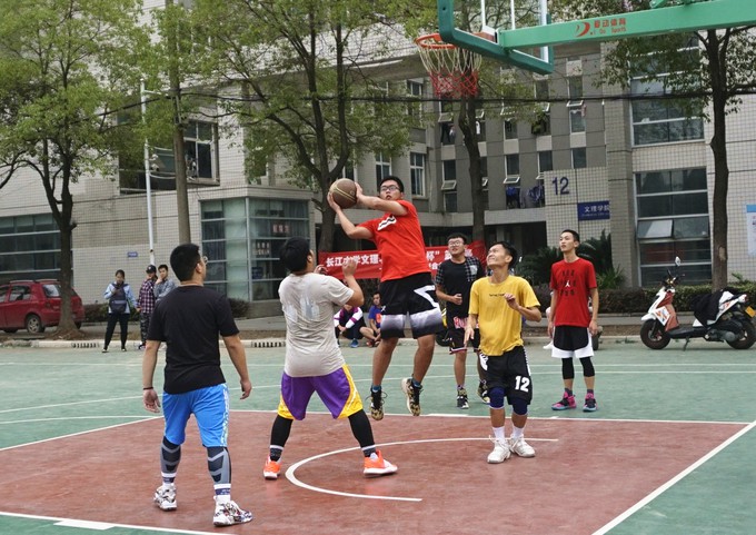 此次比赛由经法系团总支员工会体育部举办,聘请李浩然、杨益民和李斌三位同学担任裁判。比赛共分为四节,每节以十一分钟为限。在13日的比赛中,裁判哨响,双方开始跳球,新生队率先抢到球权,却在中场被截断,错失良机。渐渐地,双方进行激烈角逐,球鞋与地面摩擦声越来越多,篮球进网的声音此起彼伏。随着裁判哨响,第二小节比赛落下帷幕,新生队以14:22的比分落后于大二的学长们。在中场休息时,他们积极讨论战术,没有为落后的比分而气馁,展现了文理新生永不言弃,迎难而上的拼搏、进取精神。第三节的他们经过前两节的适应,利用身高优势稳住篮板,抢夺篮板球开始追赶比分。起跳的身影,粗重的喘气,每一小节他们都拼尽全力。就这样,整场篮球赛结束了,最终新生队以九分的差距输于大二队。