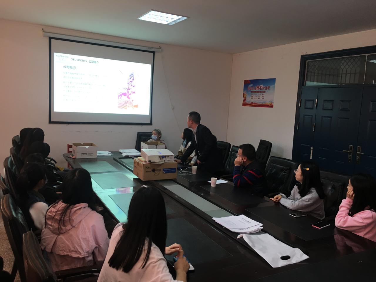 会议上,广东东莞雨枫林服饰有限公司总经理结合PPT对公司作详细介绍,对公司发展、招聘岗位、工作职责和福利待遇等方面做详细介绍。他们通过面对面交流,互动互答的方式,全面讲解了该公司的招聘岗位职责和网上报名、投报简历的流程,并对同学们提出的问题进行解答,随后有意向的同学直接可以进行线下面试签约。