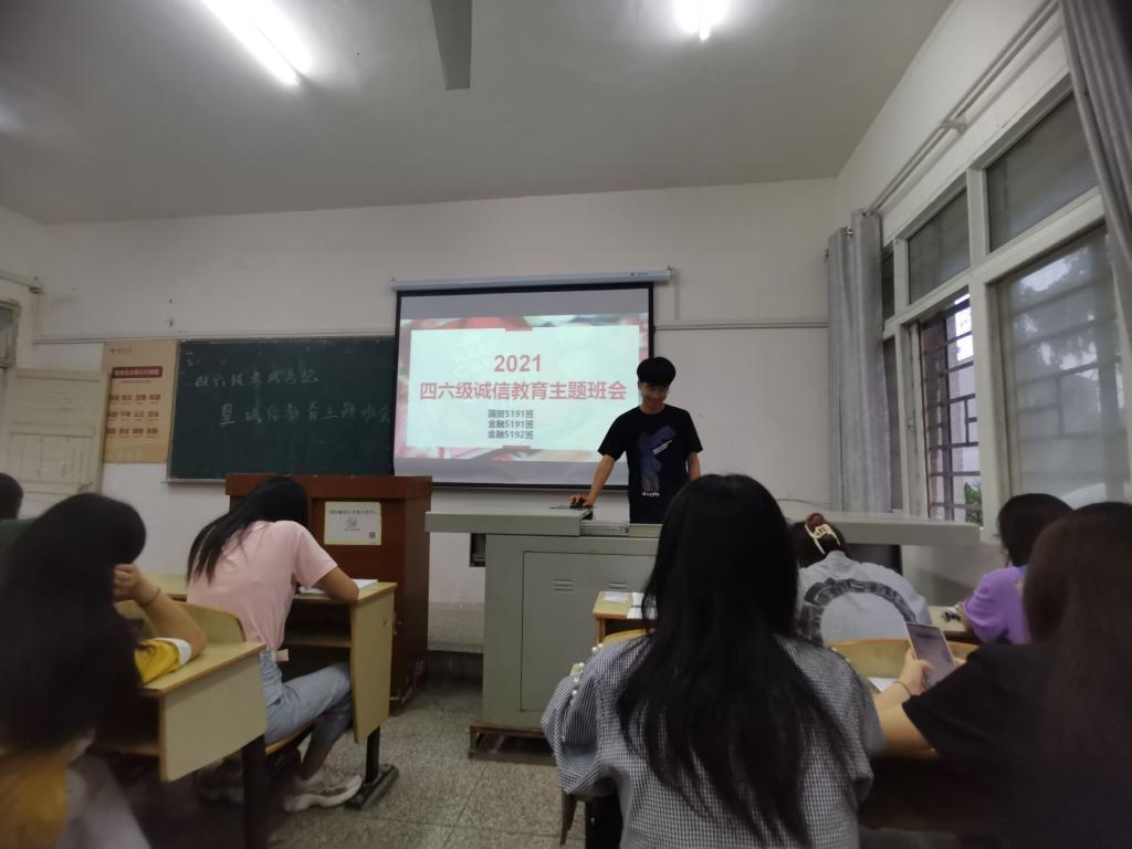 本网讯(通讯员 杜歆怡)为维护国家教育考试权威性,维护考生利益,确保考试公平公正,加强考风考纪建设,6月10日晚,经济与法学系各班开展英语四六级考风考纪主题班会,班会由各班学习委员主持,各班辅导员及全体同学参加班会。