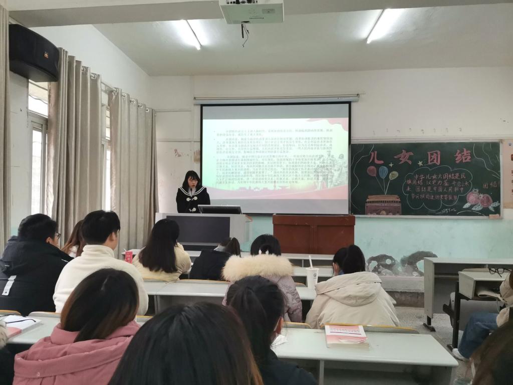 本网讯(见习记者 曾清清 贾思雪) 为促进中华儿女大团结,凝心聚力,充分统一战线的永恒主题。12月10日,经法系团总支组织各班开展“加强中华儿女大团结”主题团课活动。